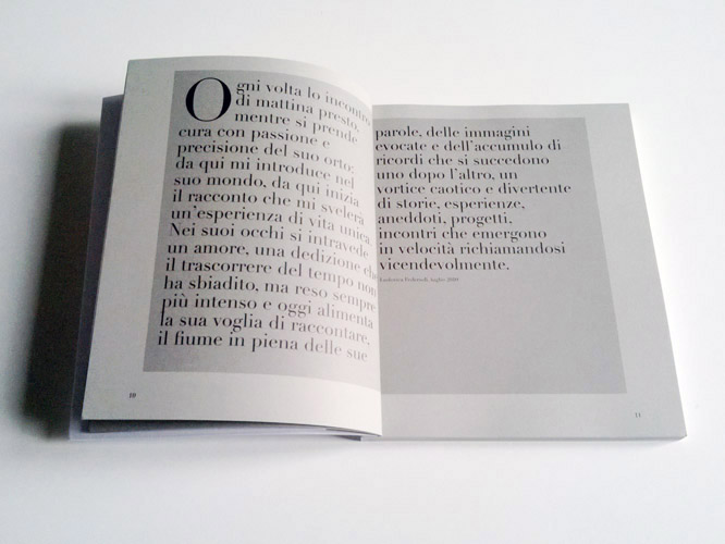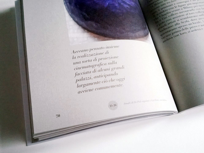 | Dati Formato chiuso 15 X 18 cm; 150 pagine stampate a 4+4 colori su carta usomano 120 gr/mq. Autore Ludovica Pedersoli Curatela redazionale Elena Turetti Progetto grafico e impaginazione Davide Pagliarini Fotografie Centrale Edison Davide Pagliarini Committente Distretto Culturale di Valle Camonica Cronologia 2013 |