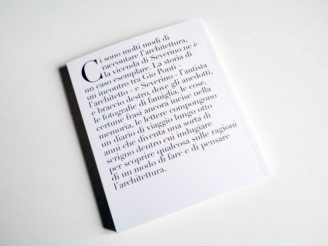 e Severino Libro, 2013 Ci sono molti modi di raccontare l'architettura, la vicenda di Severino ne è un caso esemplare. La storia di un incontro tra Gio Ponti – l'architetto - e Severino - l'autista e braccio destro, dove gli anedotti, le fotografie di famiglia, le cose, certune frasi ancora incise nella memoria, le lettere compongono un diario di viaggio lungo otto anni che diventa una sorta di scrigno dentro cui indugiare per scoprire qualcosa sulle ragioni di un modo di fare e di pensare l'architettura. Il libro contiene un progetto fotografico speciale realizzato per questa pubblicazione: 11 fotografie prese all'interno della Centrale idroelettrica Edison di Cedegolo, in Valle Camonica, progettata da Gio Ponti. |